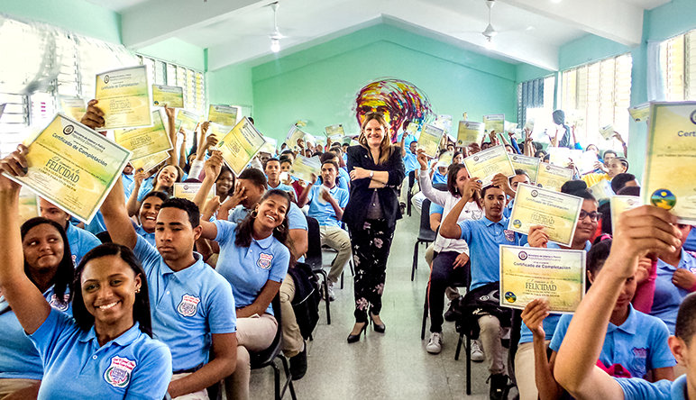 “Si quieres tener una sociedad feliz, no puedes descuidar la falta de un código moral”, dice Diana Pedroni, Directora Ejecutiva de El Camino a la Felicidad de la República Dominicana. Es un popular destino turístico por sus playas, cultura, música y gente cálida, la nación también sufre de más de 2000 muertes violentas al año. “Vi el común denominador”, dijo Pedroni. “Familias rotas que habían creado criminales y así una sociedad que está decayendo en vez de mejorar”. Al buscar soluciones encontró El Camino a la Felicidad (TWTH) y pronto se unió con Bienvenido Flores, Director Nacional de Prevención y Seguridad Ciudadana para el país.
